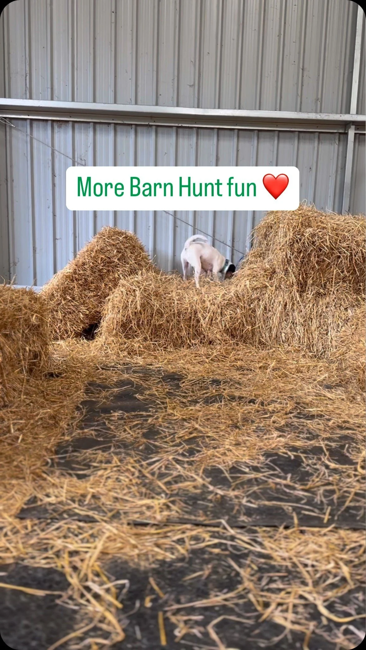 Barn hunt is a dog sport open to all dogs which uses natural hunting instincts to locate a tube in a course of straw bales.